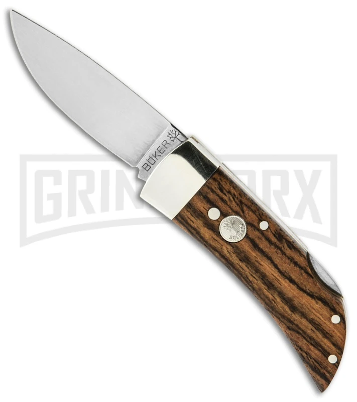 Small gentleman’s folding knife. 4034 steel blade, nickel silver bolsters, with a back lock. The Boker classic with Bocote scales.