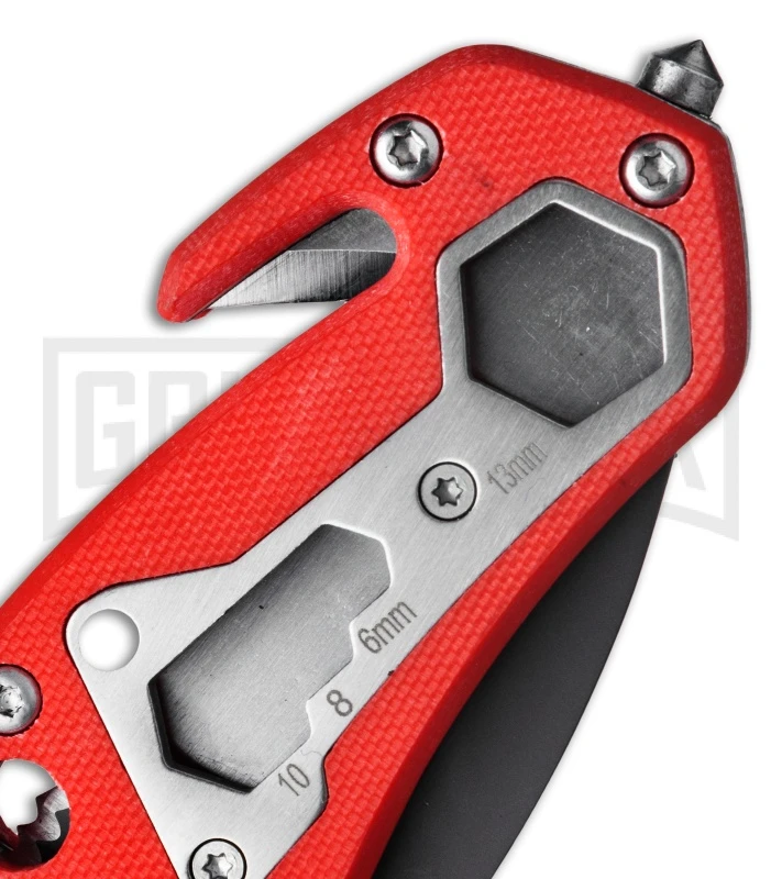 Boker created the Magnum Firefighter for those hard-working professionals who put their life on the life. It’s a utility-filled folding knife that we can all appreciate with its integrated hex tools (6 mm,8 mm,10 mm and 13 mm), seat belt cutter, glass breaker tip, and oxygen tank key. The handle is red G-10 and includes a pocket clip. Its partially serrated blade is critical for efficient cutting of fibrous materials and is titanium coated, giving it a gray finish.