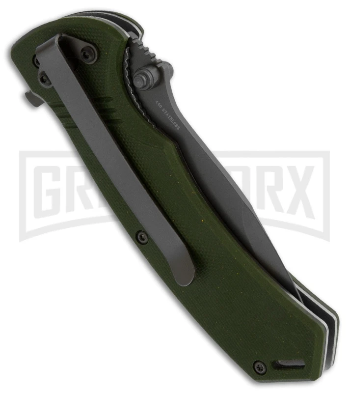 A handy and reliable knife for any task, the Boker Magnum Desert Mission Folding Knife features a 440 stainless steel that can be opened with the flipper or the thumb stud with just one hand. The jungle green G-10 handle features an anti-slip rubber insert for maximum grip. Includes pocket clip.