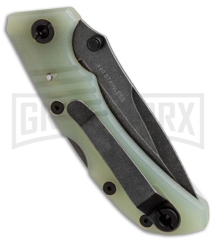 An eye-catching piece, with an impressive price-performance ratio. Semi-transparent G-10 is typically only used on knives beyond the $200 price range. The backlock mechanism secures the 440 stainless steel blade, which boasts a dark stonewash finish. Includes reversible pocket clip.