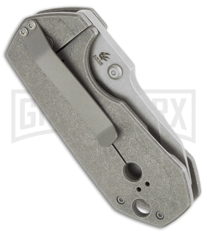 The Jens Ansø designed Albatros folder is an excellent addition to the Boker Plus line. This stout knife boasts massive 3.6 mm thick titanium plates that form the frame lock. The VG-10 blade is 5 mm thick with a stonewash finish, like the frame, and a slight hollow grind. Includes a reversible titanium pocket clip for tip-up or tip-down carry and a large lanyard hole.
