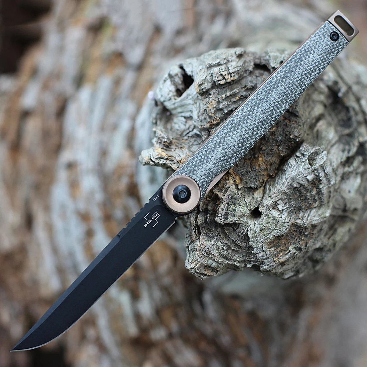 The Boker Plus Kaizen is an elegant gentleman’s knife, that meets the spirit of the times and convinces with clever detailed solutions. Modesty as a sign of true greatness is perfectly embodied by the minimalist flipper, which almost merges optically with the slim knife and yet is highly functional due to its serrations. The ball bearing blade made of satin-finished D2 works its way through everyday cutting tasks. Features a decorative blade axis screw that is the visual starting point. The textured handle made of non-slip G10 fits comfortably in the hand and is fitted with a practical deep carry clip.